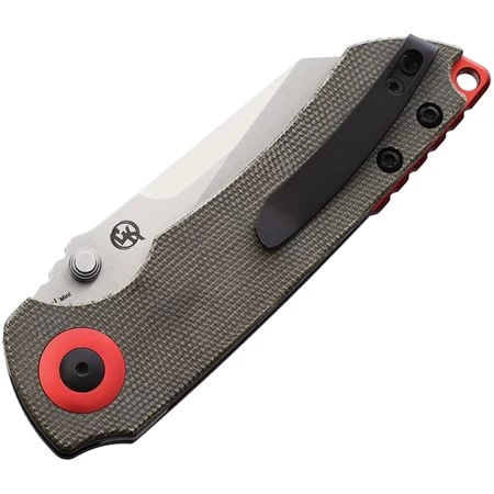 Model/Part Number – KIV3508C1. Kizer Cutlery & Knives Critical Mini Linerlock Mic. 4.25″ (10.8cm) closed. 3.25″ (8.26cm) satin finish 154CM stainless blade. Green linen micarta handle. Thumb stud. Lanyard hole. Pocket clip. Red accents. Made in China.