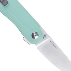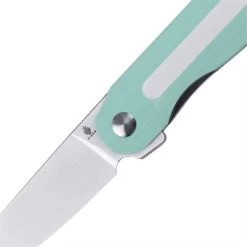 Model – KIV3567N4. Kizer Latt Vind Mini Linerlock. 3.88″ (9.86cm) closed. 3″ (7.62cm) satin finish Bohler N690 stainless blade. Green and white G10 handle. Extended tang. Lanyard hole. Pocket clip. Boxed. Made in China.