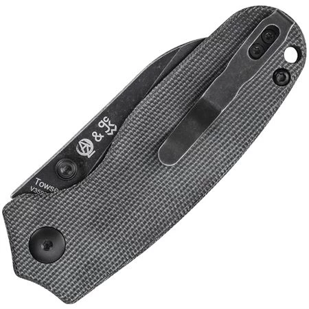 Model/Part Number – KIV3593SC2. Kizer Towser K Linerlock Micarta. 4″ (10.16cm) closed. 3″ (7.62cm) black stonewash finish 154CM stainless blade. Black micarta handle. Thumb stud. Pocket clip. Boxed. Made in China.