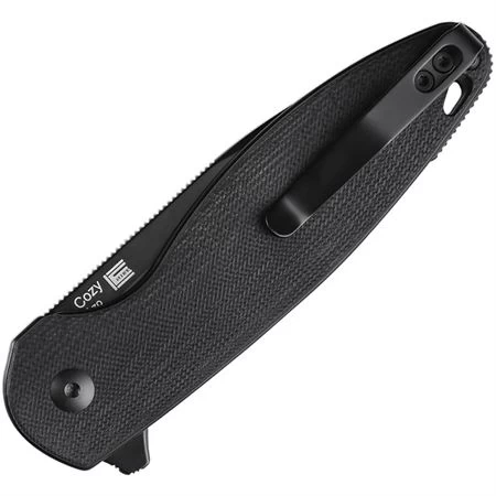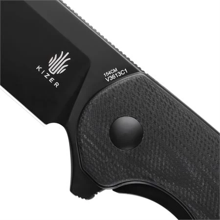 Model/Part Number – KIV3613C1. Kizer Cutlery & Knives Cozy Linerlock Black. 4.5″ (11.43cm) closed. 3.25″ (8.26cm) black finish 154CM stainless blade. Black canvas micarta handle. Extended tang. Lanyard hole. Pocket clip. Boxed. Made in China.