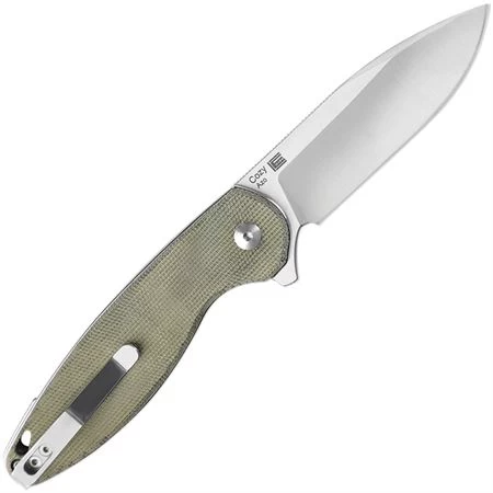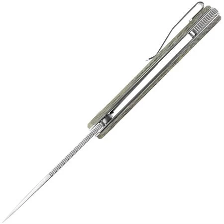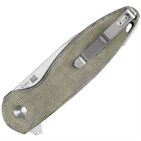 Model/Part Number – KIV3613C2. Kizer Cutlery & Knives Cozy Linerlock Green. 4.5″ (11.43cm) closed. 3.25″ (8.26cm) satin finish 154CM stainless blade. Green canvas micarta handle. Extended tang. Lanyard hole. Pocket clip. Boxed. Made in China.