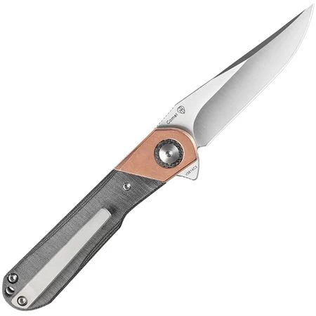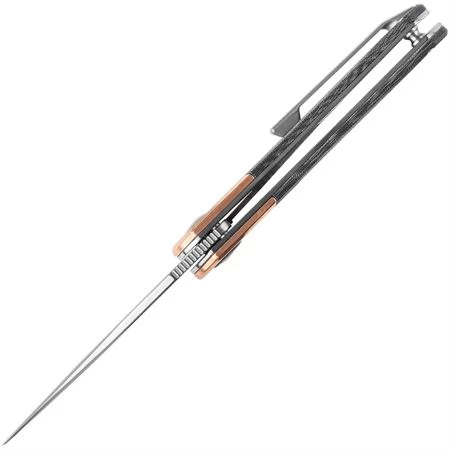 Model/Part Number – KIV3614C3. Kizer Cutlery & Knives Comet Linerlock Black. 4″ (10.16cm) closed. 2.88″ (7.32cm) satin finish 154CM stainless clip point blade. Black linen micarta handle. Copper bolster(s). Extended tang. Lanyard hole. Pocket clip. Boxed. Made in China.