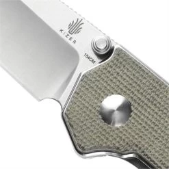 Model/Part Number – KIV4516SC2. Kizer Cutlery & Knives Domin Linerlock Green. 4.25″ (10.8cm) closed. 3.25″ (8.26cm) satin finish 154CM stainless blade. Green canvas micarta handle. Thumb stud. Lanyard hole. Pocket clip. Boxed. Made in China.