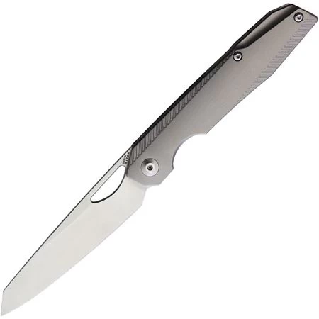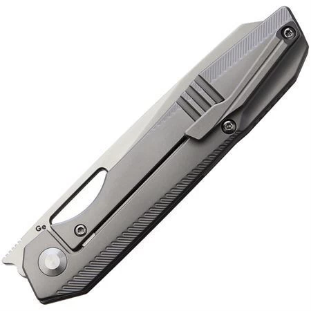 Model – KI4545A1. Kizer 4545A1 – Genie Framelock Knife Gray. 4.25″ (10.8cm) closed. 3.5″ (8.89cm) satin finish S35VN stainless blade. Gray titanium handle. Thumb pull. Pocket clip. Black nylon pouch. Boxed. Made in China.