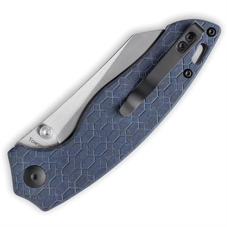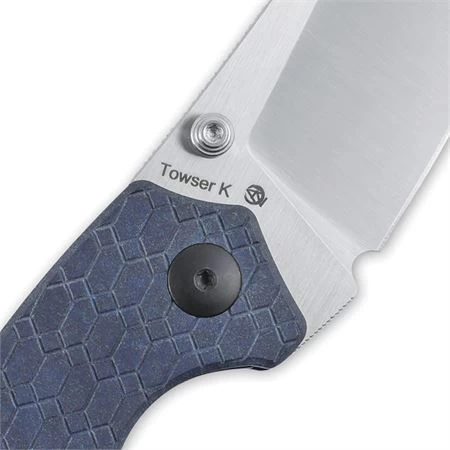 Model – KIV4593C1. Kizer 4593C1 – Towser K Knife Blue. 4.63″ (11.76cm) closed. 3.5″ (8.89cm) satin finish 154CM stainless blade. Blue G10 handle. Thumb stud. Lanyard hole. Pocket clip. Boxed. Made in China.