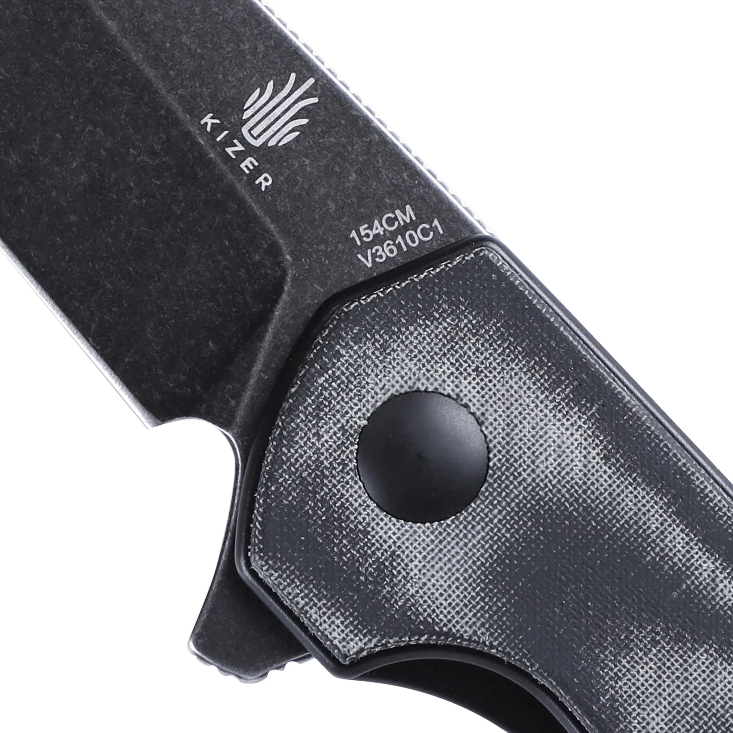 The blade of this knife is made of 154cm steel, which delivers excellent edge retention, and corrosion resistance, and is suitable for heavy cutting applications. Moreover, the surface of the knife is coated with black titanium, and after stone washing, it looks like a matte texture. The handle of the knife is made of Micarta, which will feel the texture of denim, and the texture is also particularly beautiful and is deeply loved by the public.