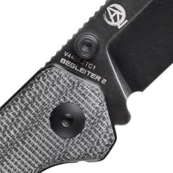 This Begleiter 2 has a black Micarta handle. Micarta has a soft feel in the hand and possesses an aggressive grip piness.
