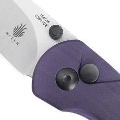 This Chilli Pepper is a new product. The whole knife is a satin knife blade with a purple handle, which has a contrasting color sense. The knife blade is made of 154cm, which has better edge retention and improved toughness. There is a thumb stud to the blade so that the knife head shows a sense of color unified. The handle is made of purple G10 material, which has the advantages of non-slip, and durability resistance. And the curvature of the handle is also particularly beautiful. And this knife adds a highlight, that is, the button lock used, which allows you to easily close the lock.
