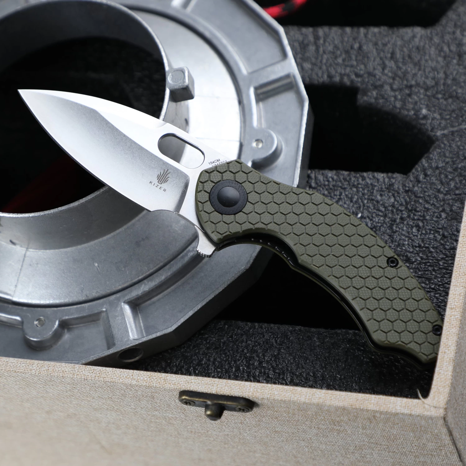 The Mini Roach is a shrunken down version of the original, but has the same lines, angles, and materials that made the original famous. While it’s not as big as the original, it’s by no means small; you can still grip it in multiple places and get some hard work done with it. Kizer Folding Knives make innovative designs accessible! Get one to see for yourself why they are so popular!