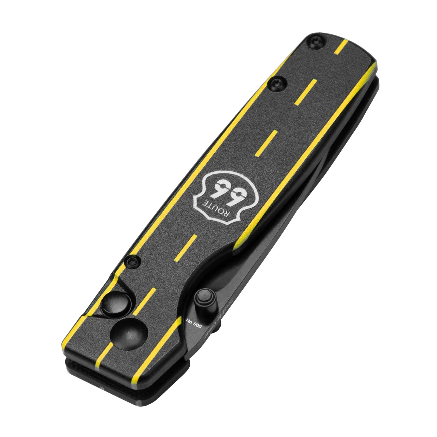 The “Coast to Coast” is printed on the back of the knife, which represents that the driver can take Route 66 from the east/west bank (driving all the way) to the west/east coast, and the consistent pursuit of American freedom.