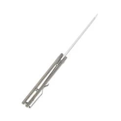 Designed by Kizer. The Genie is a sturdy front flipper knife. The word Genie is German, and means “Genius”. This knife is really lightweight and comfortable in hand. It is a stainless steel frame lock knife with a stonewashed 154CM steel blade. Reverse tanto blade is great for cutting things. It is actually a good knife for EDC.