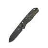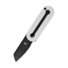 Justice folding knife features blue Micarta handle scales. The Justice is designed by Nhut Huynh and Azo. It has full stainless steel liners, a liner lock, and a reversible, deep carry pocket clip. The stainless steel clip is for tip-up carry and has a decorative blue stripe. The blade can be deployed with either the thumb stud or flipper tab. The drop point blade is made out of N690 steel, which is great for ease of sharpening and toughness. The Justice is topped off with a removable glass breaker.