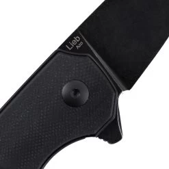 Lieb is a small flipper knife designed by Azo. It is a liner lock knife with G-10 handle. This Lieb has a Black handle. The Wharncliffe blade is Black-finished bohler N690 steel. It includes a tip-up pocket clip.