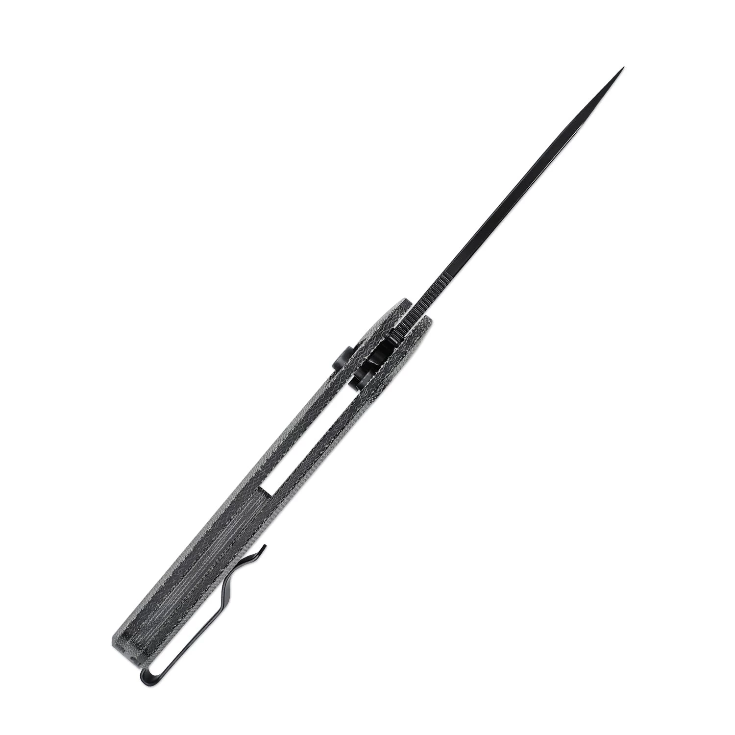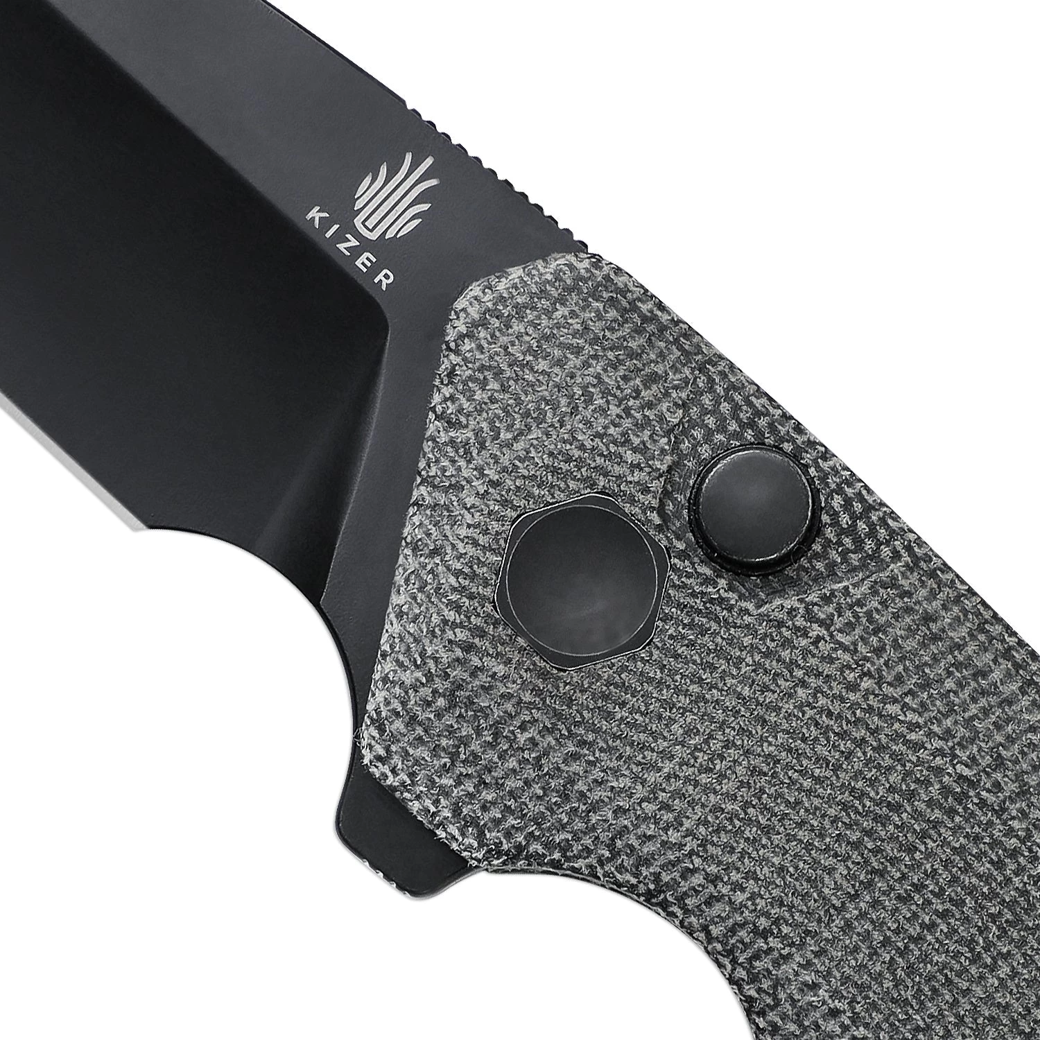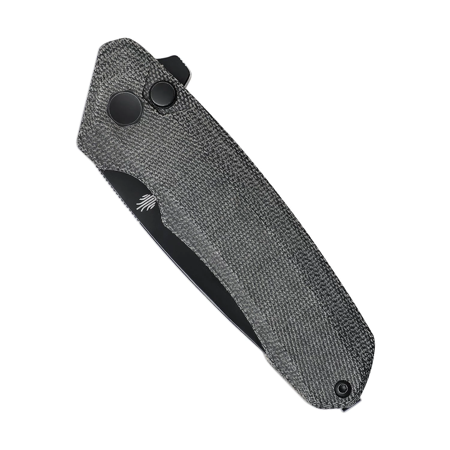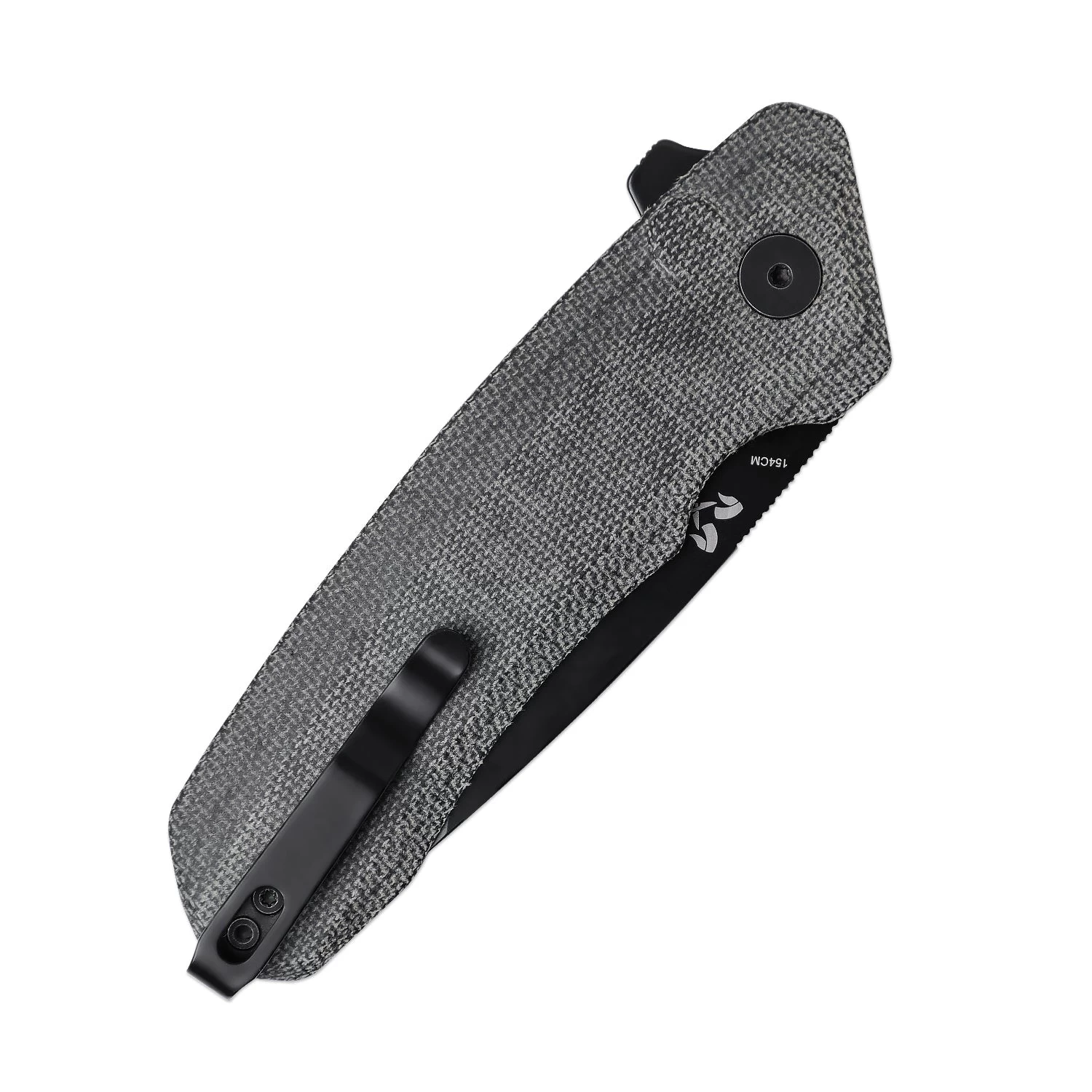 A new button lock product, and the handle is equipped with hexagonal spindle pin, with exquisite design; The black blade is matched with the handle of black water washed micarta material and black stone washed parts, which is simple and low-key;
