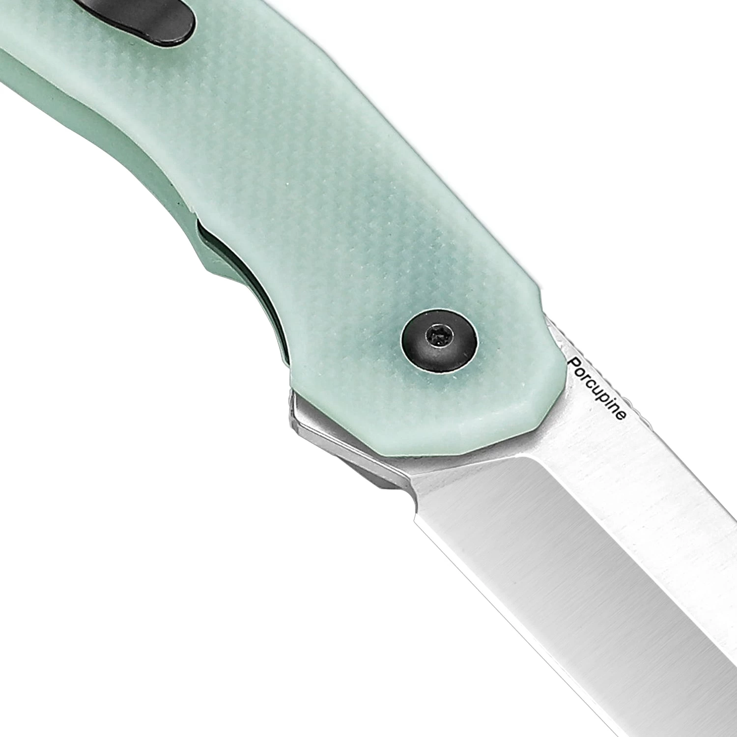 The handle is made of G10 material, which is as green as jade, just like the green bamboo in ink painting. The ergonomic camber and plaid design gives you a firmer grip on the “Porcupine”.