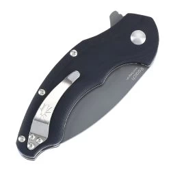 The Matt Degnan-designed Roach knife is an exciting Kizer model that’s made its way to their Vanguard lineup. It has a wide spear point style N690 stainless steel blade with a gray titanium coating. The handle is contoured orange G-10 with a G-10 backspacer and a stainless steel liner lock frame. The pocket clip is oriented for tip-up carry and marked with a Roach logo.