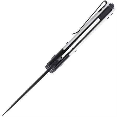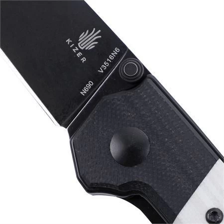 Model – KIV3516N6. Kizer V3516N6 – Mini Domin Linerlock Knife White. 4″ (10.16cm) closed. 2.75″ (6.99cm) black finish Bohler N690 stainless blade. Black and white G10 handle. Extended tang. Thumb stud. Pocket clip. Lanyard hole. Boxed. Made in China.